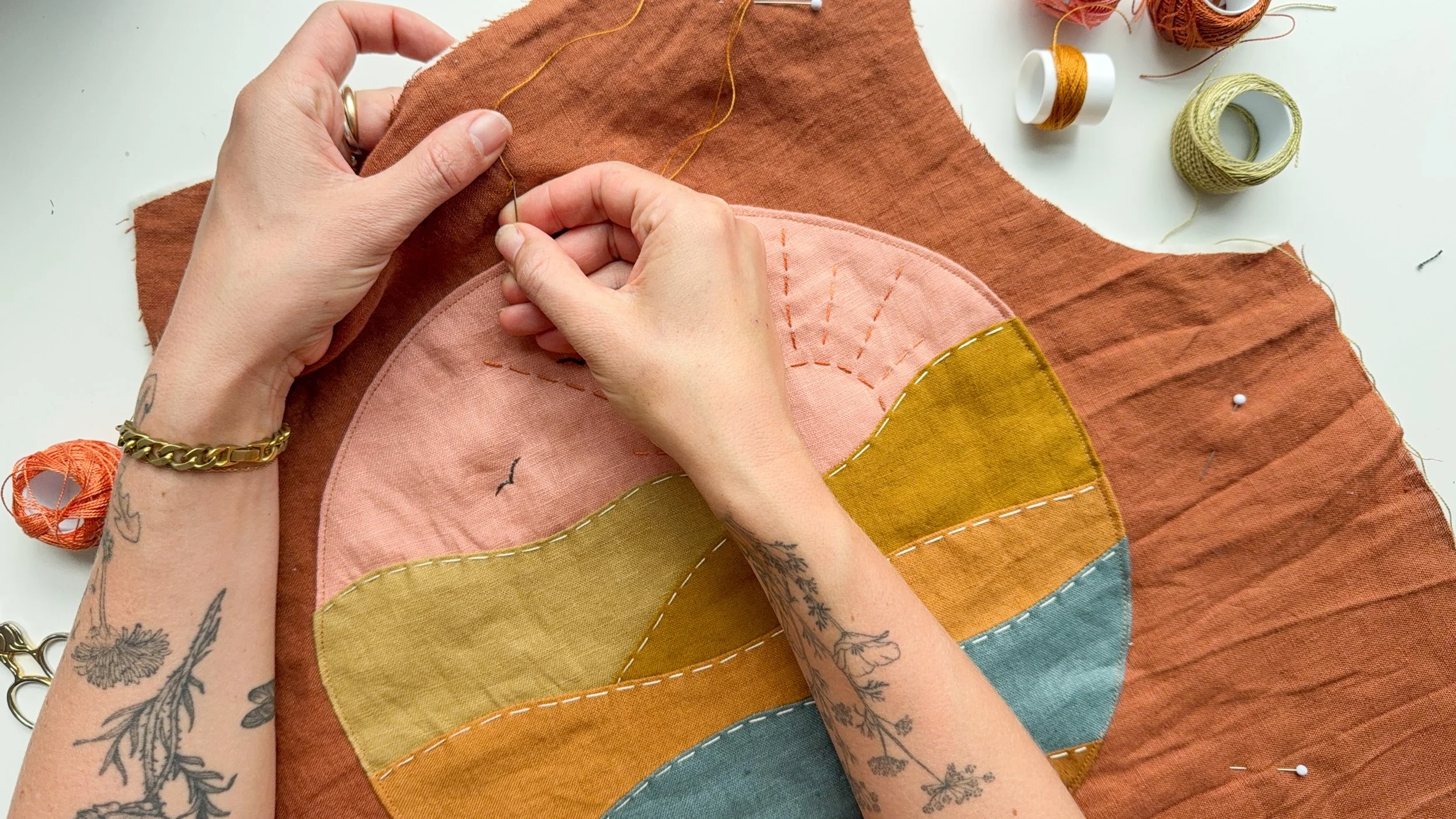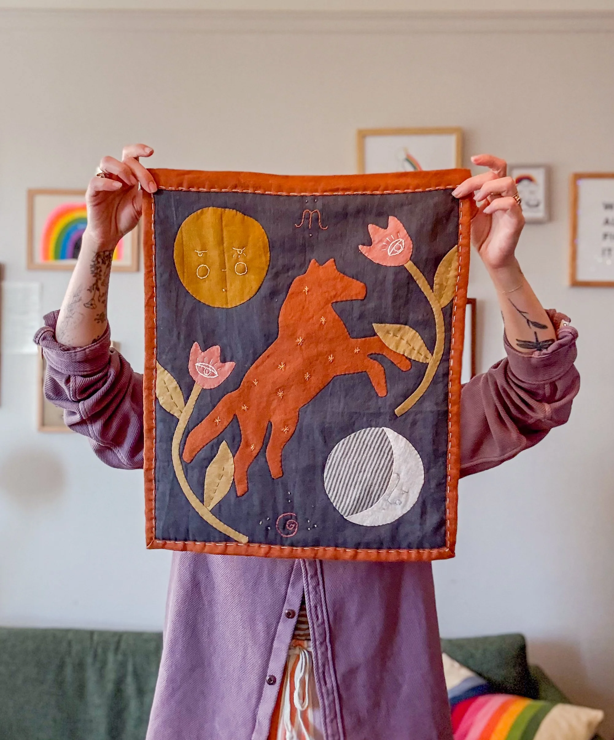 I’m a fiber artist, movement teacher, and creative facilitator. My work lives at the intersection of craft, mindfulness, and magic — a place where making becomes more about the process than the outcome.